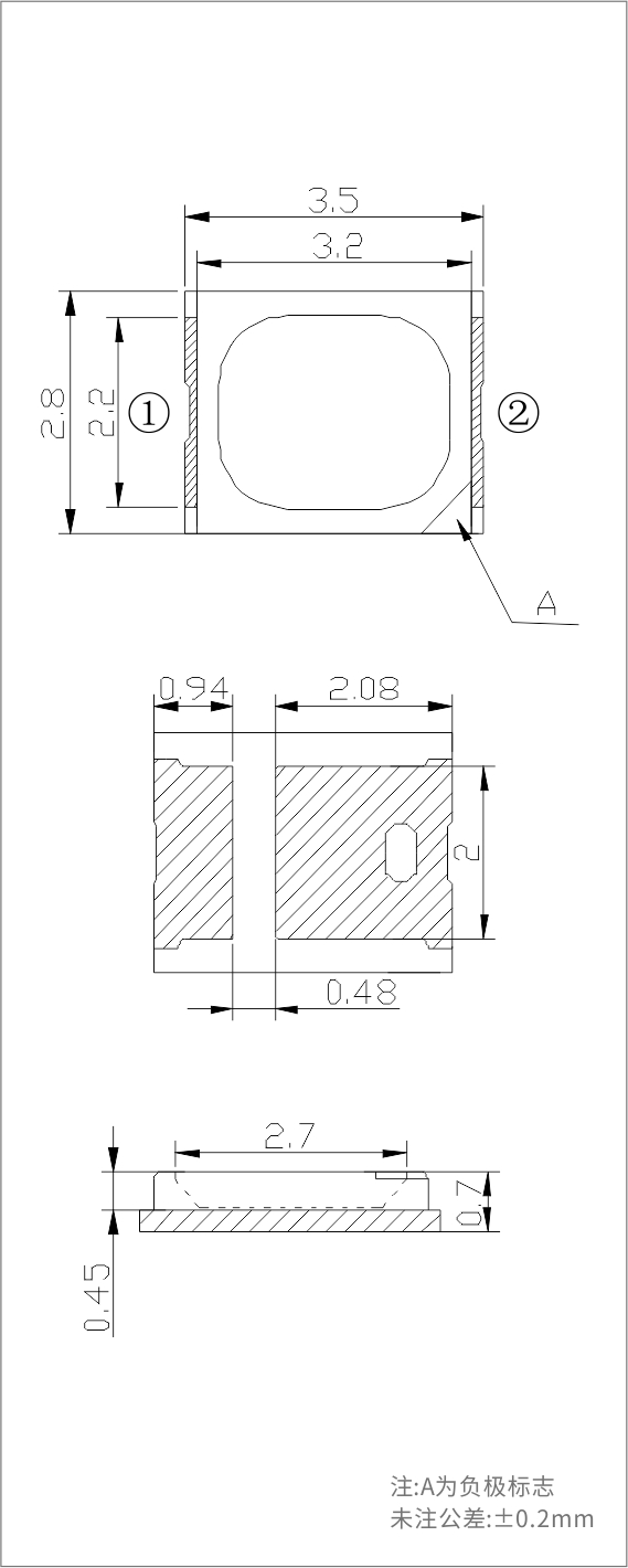 ? 帶熱沉薄型支架,垂直散熱結(jié)構(gòu),可靠性高,光量子通量效率高,性價(jià)比高