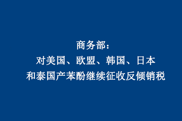 商務(wù)部:對(duì)美國、歐盟、韓國、日本和泰國產(chǎn)苯酚繼續(xù)征收反傾銷稅