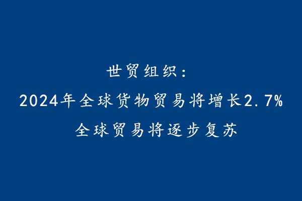 世貿(mào)組織:2024年全球貨物貿(mào)易將增長(zhǎng)2.7% 全球貿(mào)易將逐步復(fù)蘇