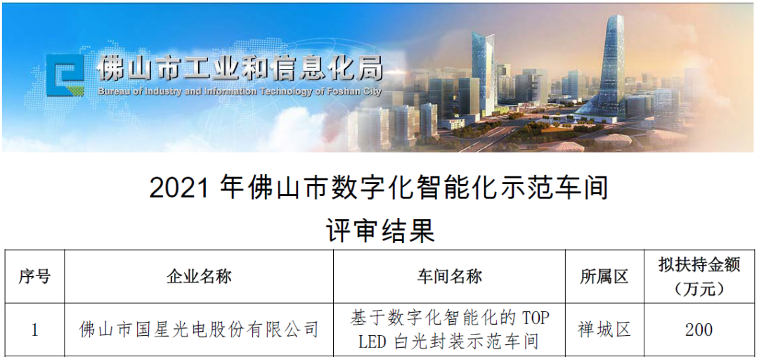 國(guó)星光電獲批佛山市工業(yè)互聯(lián)網(wǎng)示范標(biāo)桿項(xiàng)目